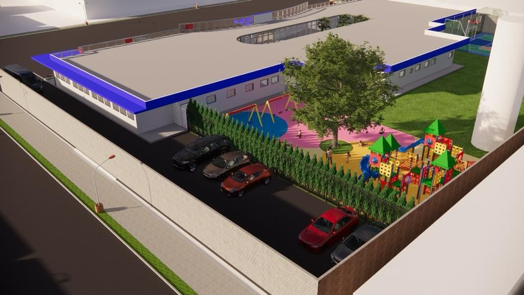 A área de ensino será equipada com salas individuais e coletivas, de tecnologia, musicoterapia, brinquedoteca, administração e refeitório, proporcionando um ambiente diversificado e inclusivo para o aprendizado e desenvolvimento das crianças.