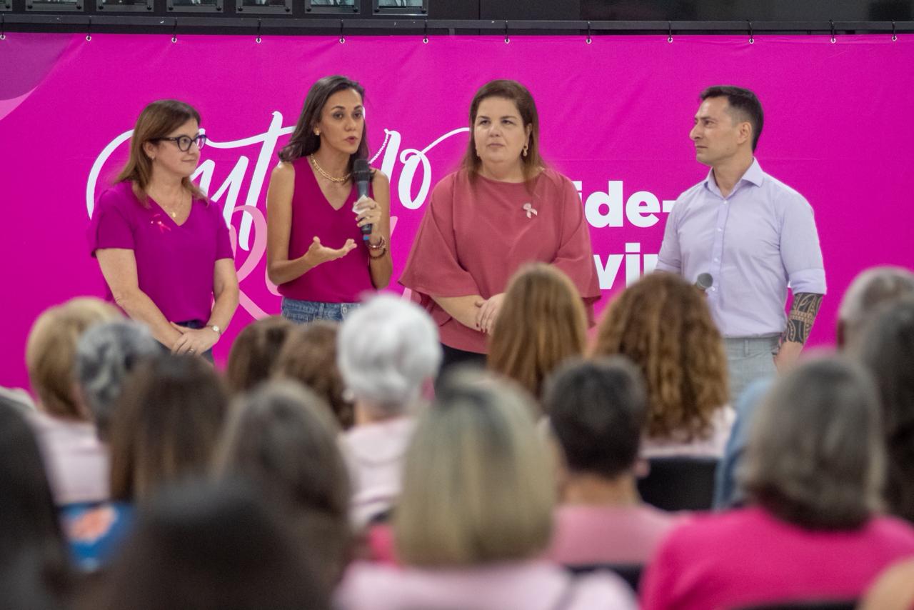 A prefeita Mara Bertaiolli (PL), ao lado do vice-prefeito Téo Cusatis (PL), deu início à programação do Outubro Rosa 2025 na última quarta-feira (1º), em evento realizado no auditório da prefeitura.